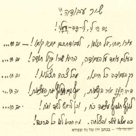 'יה חי לי לי יה עמלי', משורה בערבית לשיר העבודה הפופולארי ביותר ביישוב